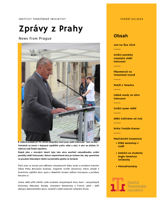 Institut Terezínské iniciativy s potěšením oznamuje vydání nového čtvrtletního zpravodaje, který přináší aktuální informace o našich aktivitách, projektech a událostech. V tomto vydání se dozvíte více o našich vzdělávacích programech, vzpomínkových akcích a nových publikacích, které přispívají k uchovávání paměti na oběti holokaustu a podporují historické povědomí ve společnosti.