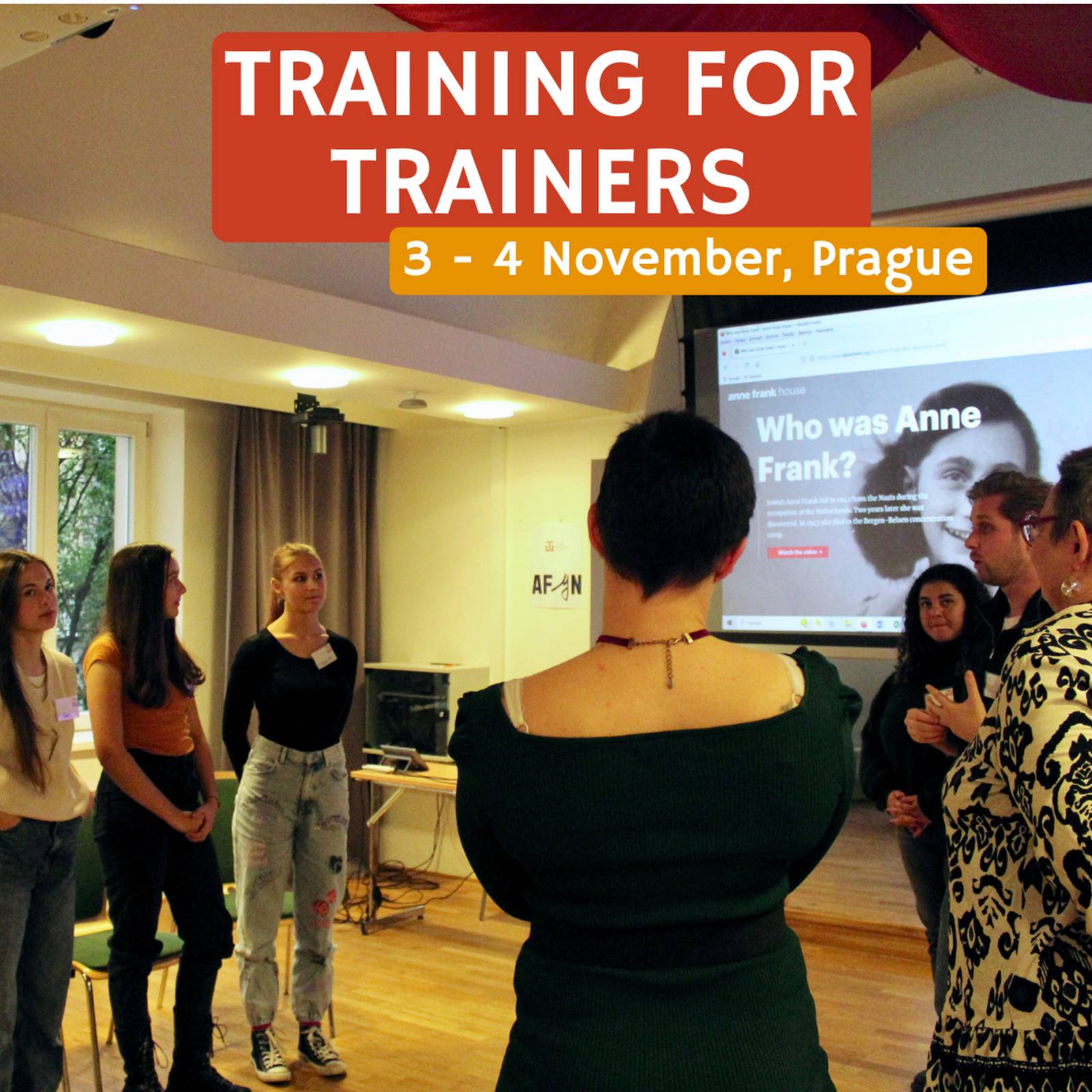 Během úvodního semináře "Training of Trainers", který se konal 3. a 4. listopadu v Praze, nám kolegové z Amsterdamu poskytli informace o Anne Frank Youth Network (AFYN), o motivaci této sítě, jejích cílech a různých stránkách sítě. Hlavním tématem je život Anny Frankové - její deník, její osud a její odkaz -, kterému jsme se věnovali zejména první den.