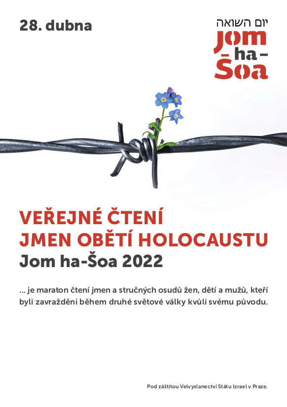 Dne 28. dubna proběhl již 17. ročník Veřejného čtení jmen obětí holocaustu – Jom ha-šoa. Po dvou letech, kdy tato připomínková akce probíhala kvůli omezením spojeným s pandemií koronaviru pouze online, se letošní formát opět vrátil na veřejnost.