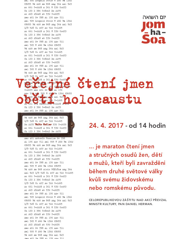 Veřejné čtení jmen obětí holocaustu - Jom ha-šoa 2017