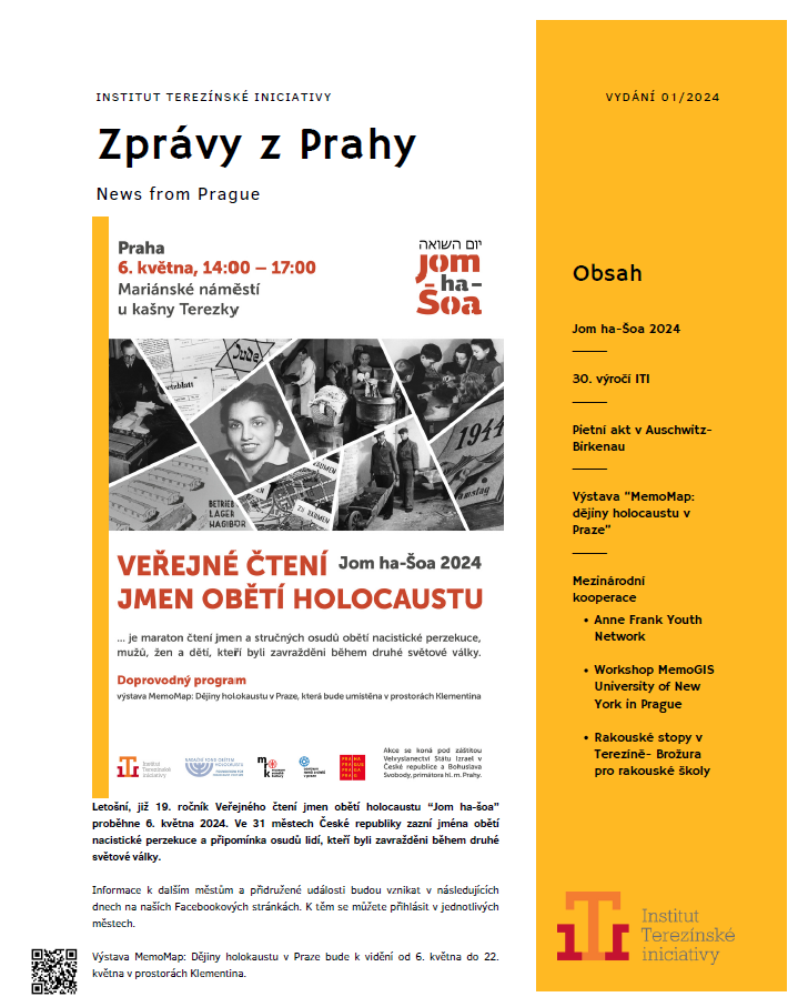 Er enthält eine Einladung zu Jom HaShoah in Prag und anderen Städten der Tschechischen Republik, einen Artikel zum 30-jährigen Bestehen des ITI und Informationen über unsere zahlreichen Aktivitäten: